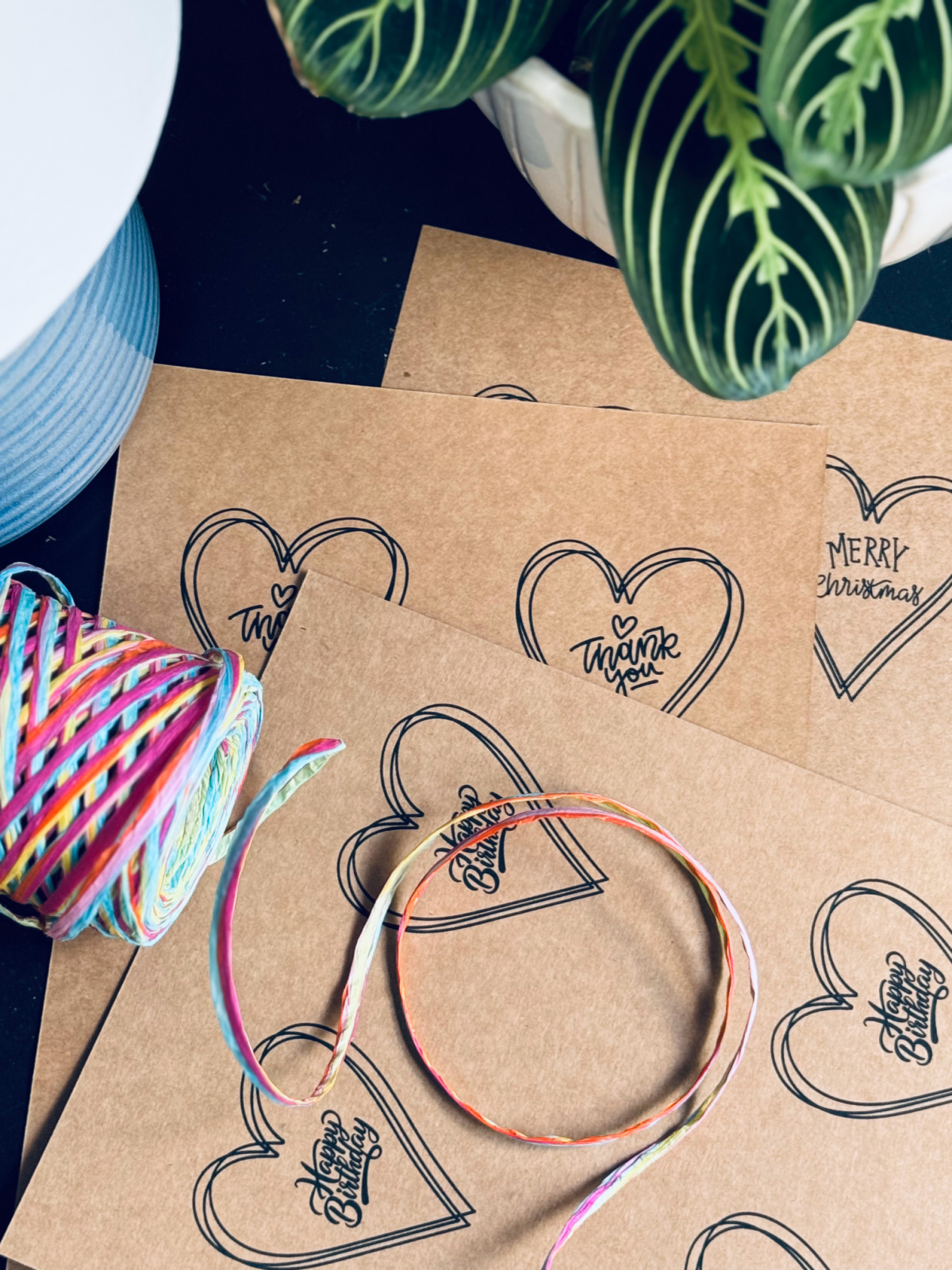 Print it on brown card stock (I got THIS pack) – just my personal preference. Cut them out as you please – around the heart with room for a hole punch, or in a gift tag shape.