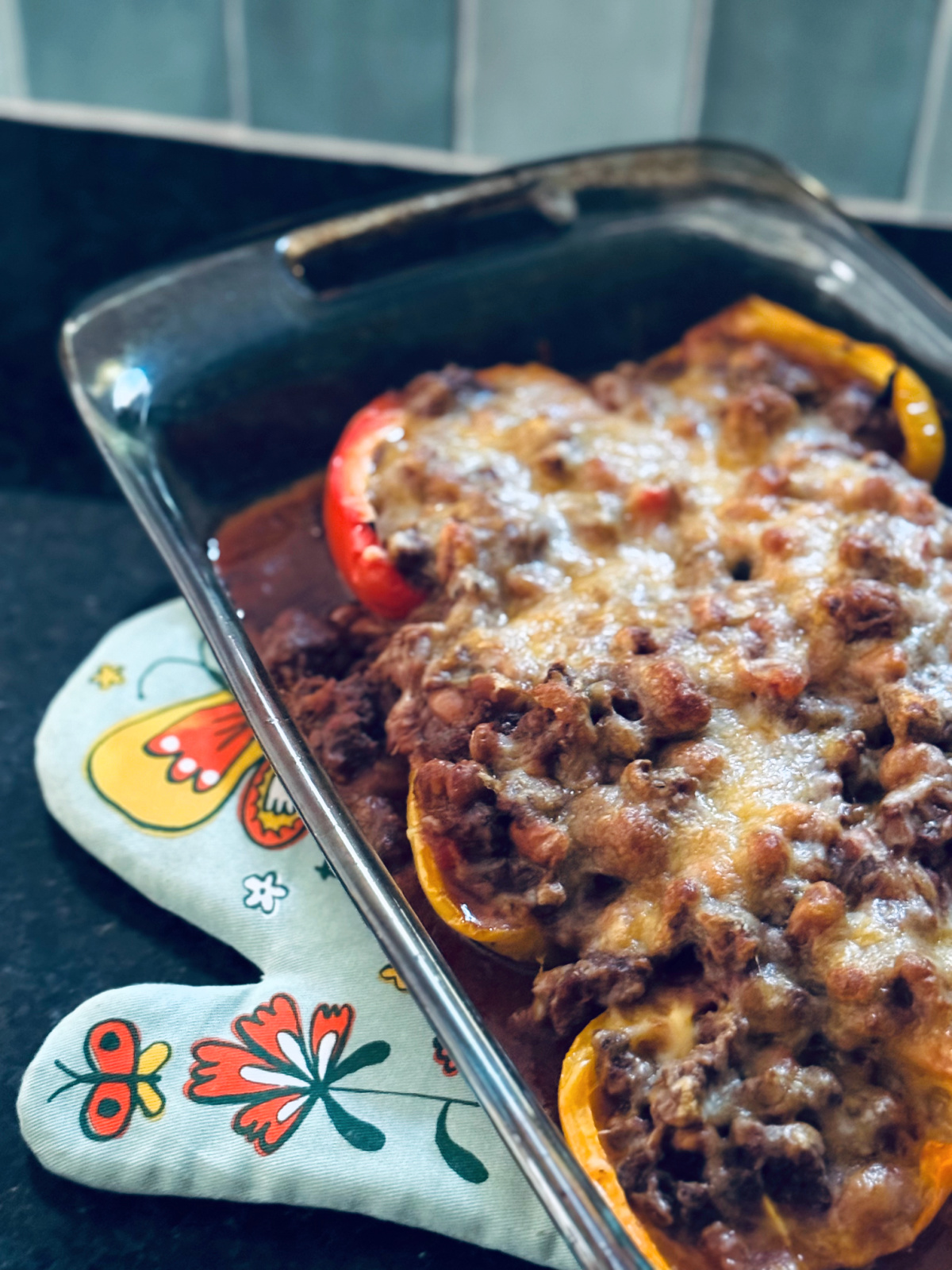 These casserole-style taco stuffed peppers have fewer steps AND pantry, freezer and fridge stable ingredients you can always keep on hand (so you don’t grab take out, instead).
