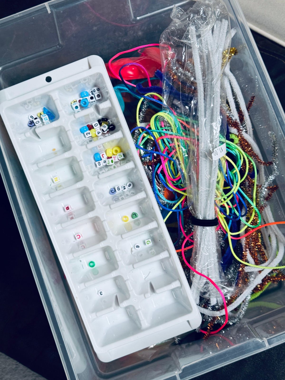 Besides the crafting supplies that live in my two crafty kiddos rooms, we have two small bins of general use crafting supplies….and possibly a third, now that I think of it. I’m pretty sure we can get it down to one bin.